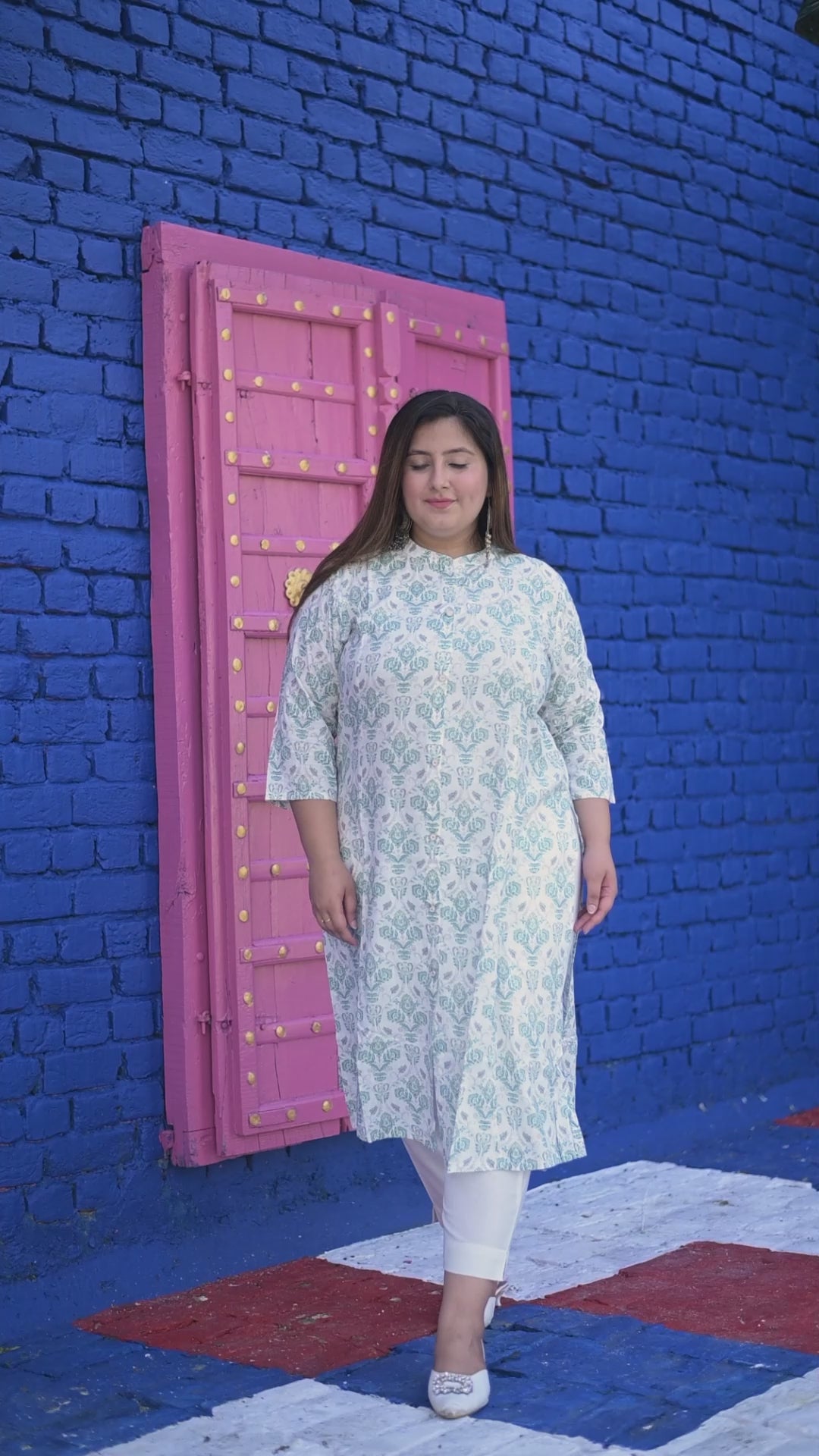 Introducing our new comfortable Aqua-blue white Sanganeri printed Rayon Slub princess cut kurta.